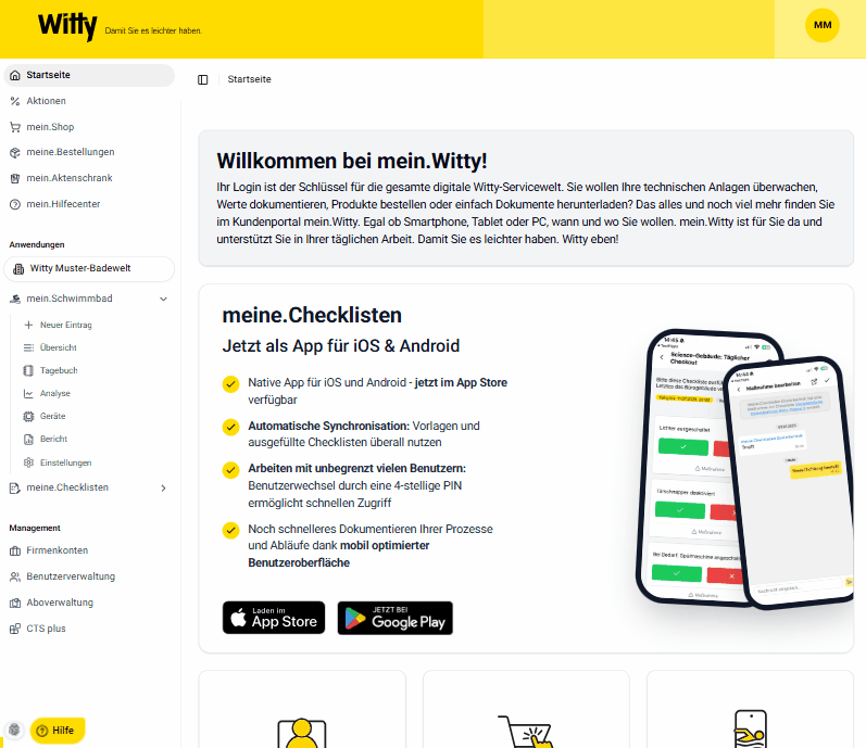 Stellen Sie sicher, dass Sie sowohl als Hauptnutzer für den mein.Schwimmbad-Account angemeldet sind, als auch das entsprechende Objekt ausgewählt ist.