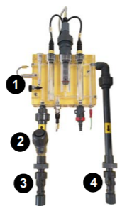 ![]() | Filter im Messwasserzulauf schützen die Durchflussarmatur und deren Einbauten vor Verschmutzung. Sie müssen mind. wöchentlich kontrolliert und bei Bedarf gereinigt ung ggf. erneuert werden: 1. Schließen Sie die Absperrhähne für Messwasserzulauf (3) und -ablauf (4). 2. Öffnen Sie den Schrägsitzfilter (2) und reinigen Sie das innen liegende Schmutzsieb. 3. Führen Sie den Filtereinsatz wieder ins Filtergehäuse ein und verschrauben ihn handfest. 4. Öffnen Sie die Absperrhähne (3,4) wieder |